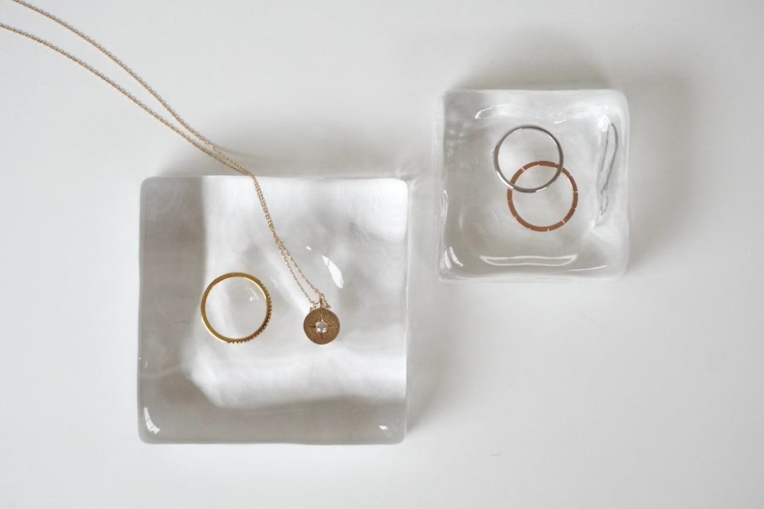 洗面所やベッドサイド、リビングルームなどで外した指輪の定位置に。