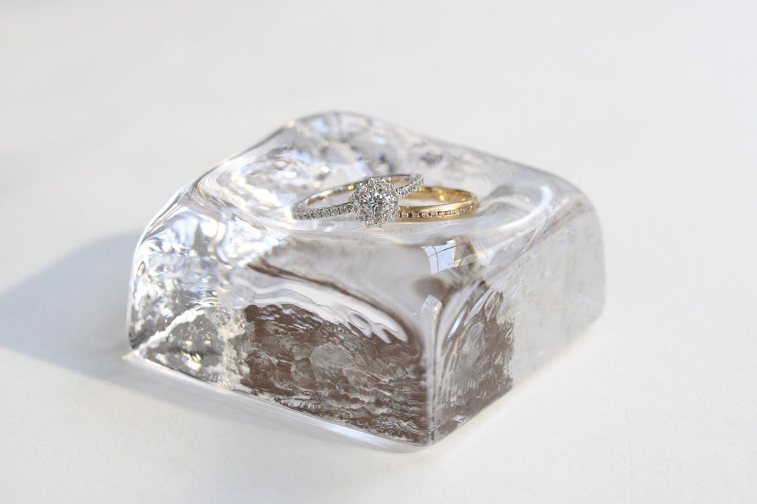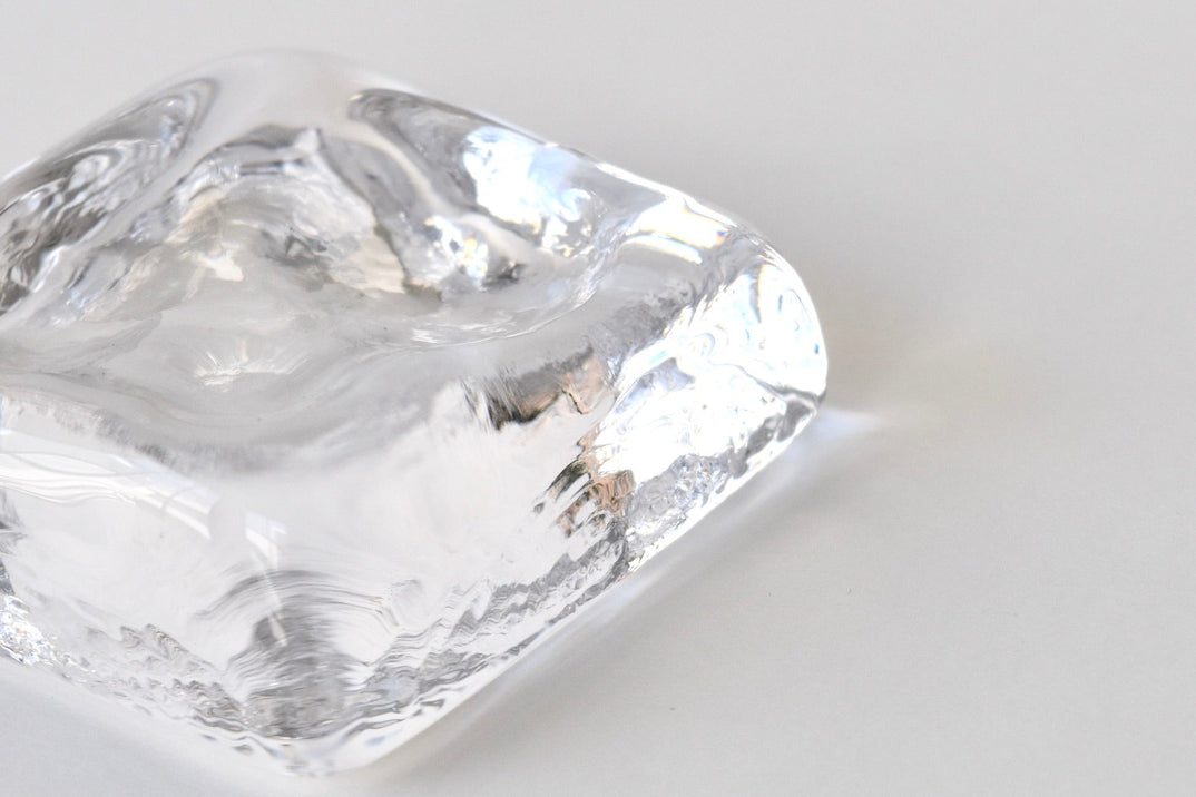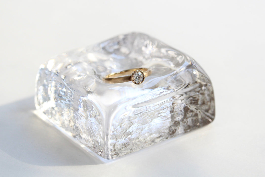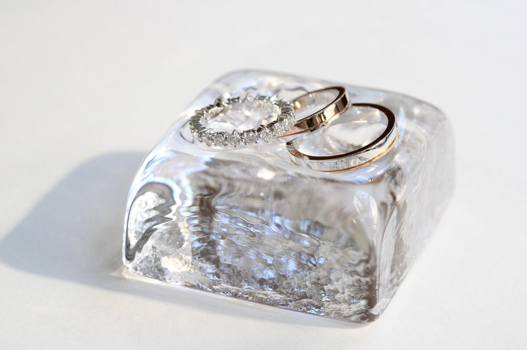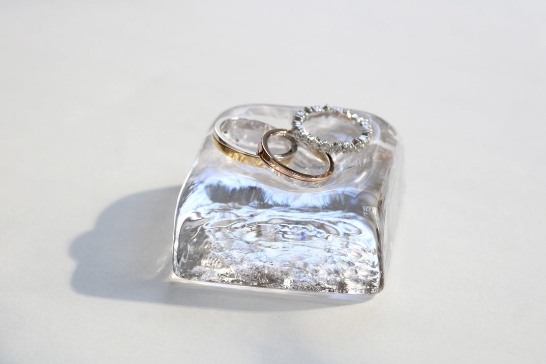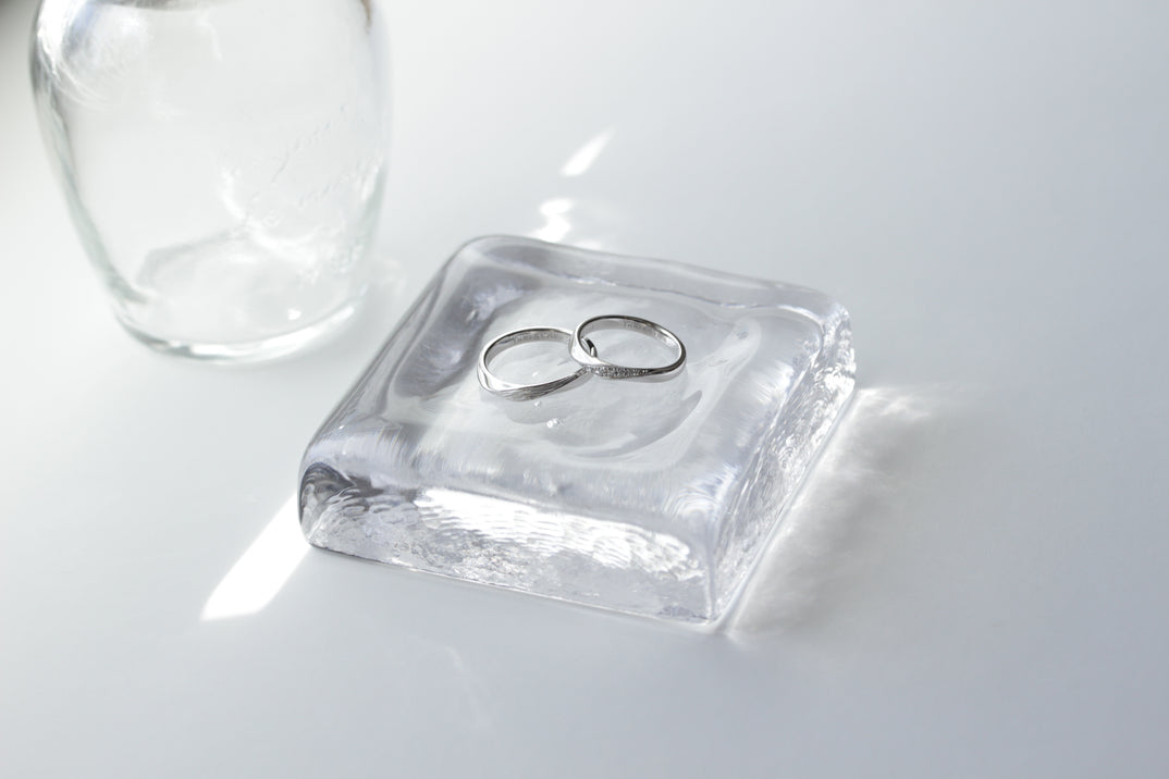 シンプルながらも、透明感あるクリアガラスと表情豊かな凹凸が、ジュエリーの輝きを引き立てます。
